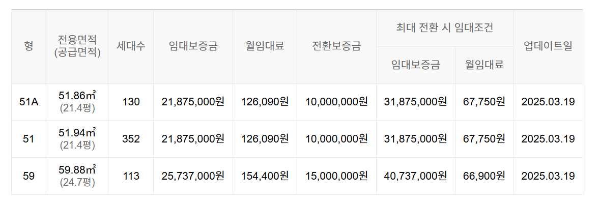 임대보증금 및 월 임대료는 입주자 모집공고일 기준이며, 보증금 최대 전환 시 변동될 수 있습니다.