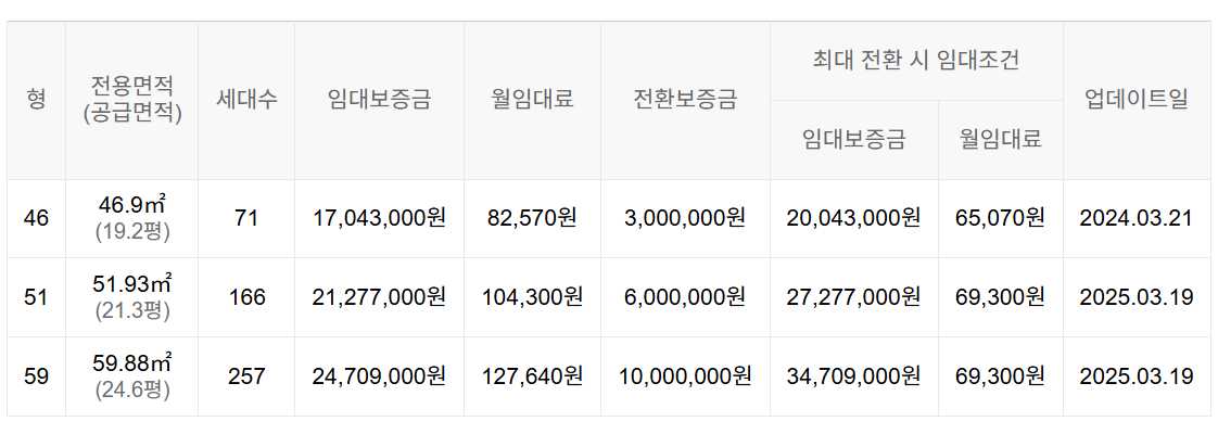 임대보증금 및 월 임대료는 입주자 모집공고일 기준이며, 보증금 최대 전환 시 변동될 수 있습니다.