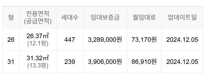 임대보증금 및 월 임대료는 입주자 모집공고일 기준이며, 보증금 최대 전환 시 변동될 수 있습니다.