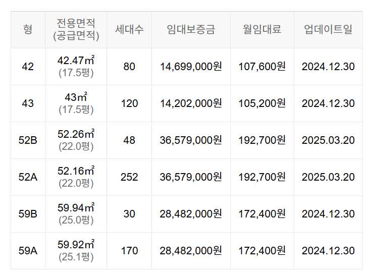 임대보증금 및 월 임대료는 입주자 모집공고일 기준이며, 보증금 최대 전환 시 변동될 수 있습니다.