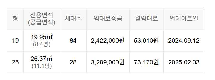 임대보증금 및 월 임대료는 입주자 모집공고일 기준이며, 보증금 최대 전환 시 변동될 수 있습니다.