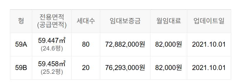 임대보증금 및 월 임대료는 입주자 모집공고일 기준이며, 보증금 최대 전환 시 변동될 수 있습니다.