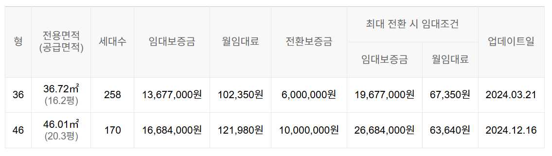 임대보증금 및 월 임대료는 입주자 모집공고일 기준이며, 보증금 최대 전환 시 변동될 수 있습니다.