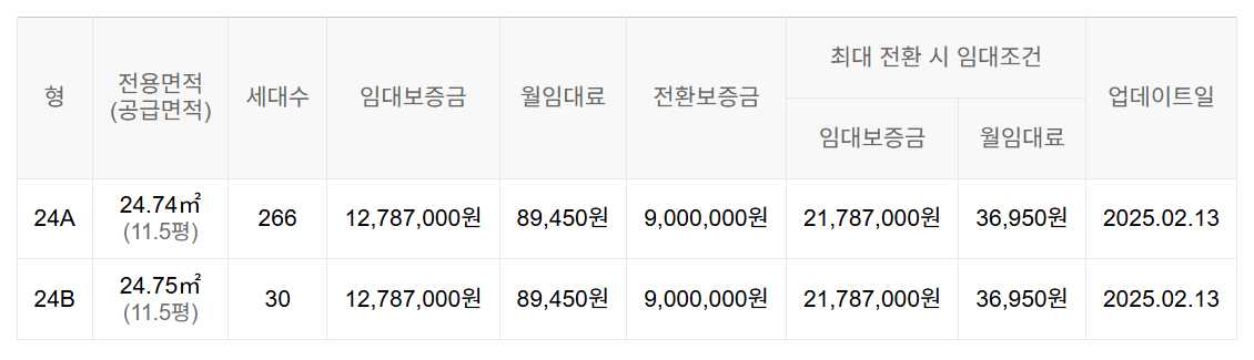 임대보증금 및 월 임대료는 입주자 모집공고일 기준이며, 보증금 최대 전환 시 변동될 수 있습니다.
