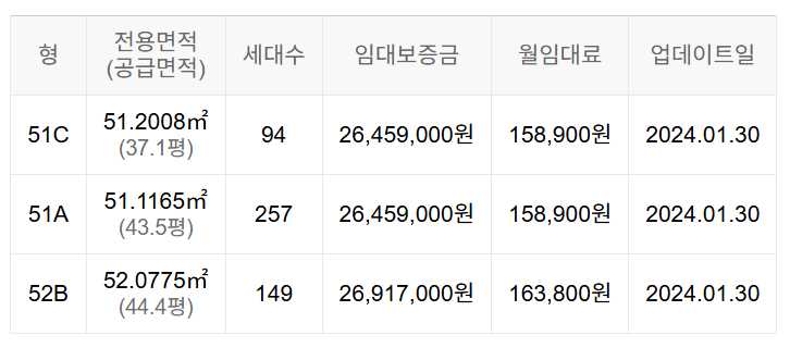 임대보증금 및 월 임대료는 입주자 모집공고일 기준이며, 보증금 최대 전환 시 변동될 수 있습니다.