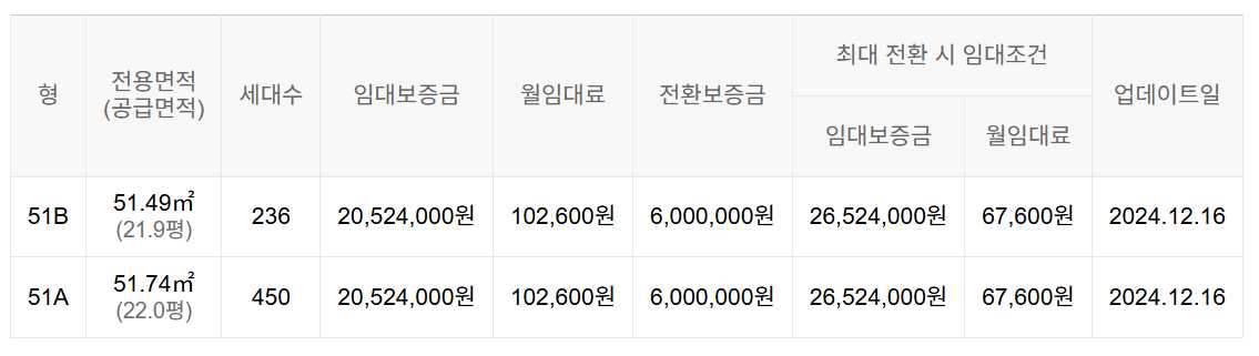 임대보증금 및 월 임대료는 입주자 모집공고일 기준이며, 보증금 최대 전환 시 변동될 수 있습니다.