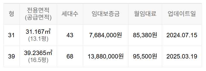 임대보증금 및 월 임대료는 입주자 모집공고일 기준이며, 보증금 최대 전환 시 변동될 수 있습니다.