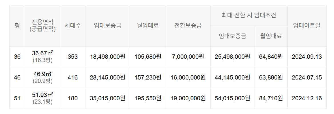 임대보증금 및 월 임대료는 입주자 모집공고일 기준이며, 보증금 최대 전환 시 변동될 수 있습니다.