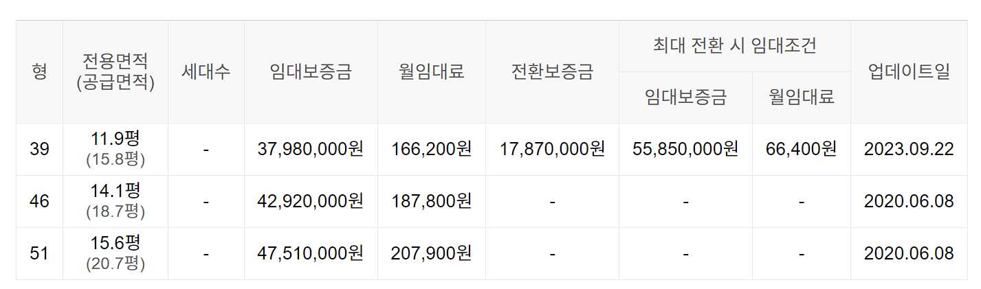 임대보증금 및 월 임대료는 입주자 모집공고일 기준이며, 보증금 최대 전환 시 변동될 수 있습니다.