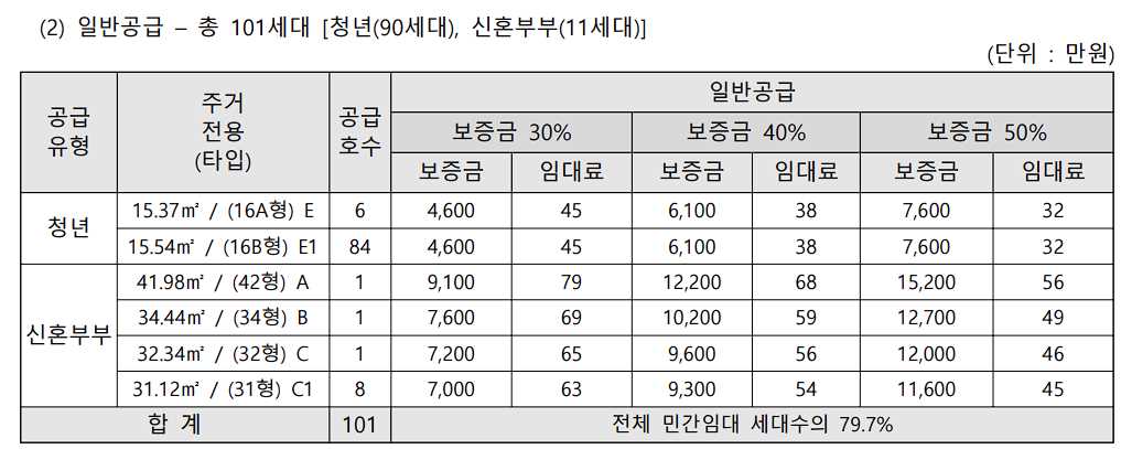 임대보증금 및 월 임대료는 입주자 모집공고일 기준이며, 보증금 최대 전환 시 변동될 수 있습니다.