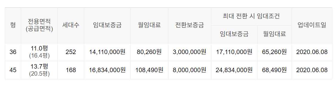 임대보증금 및 월 임대료는 입주자 모집공고일 기준이며, 보증금 최대 전환 시 변동될 수 있습니다.