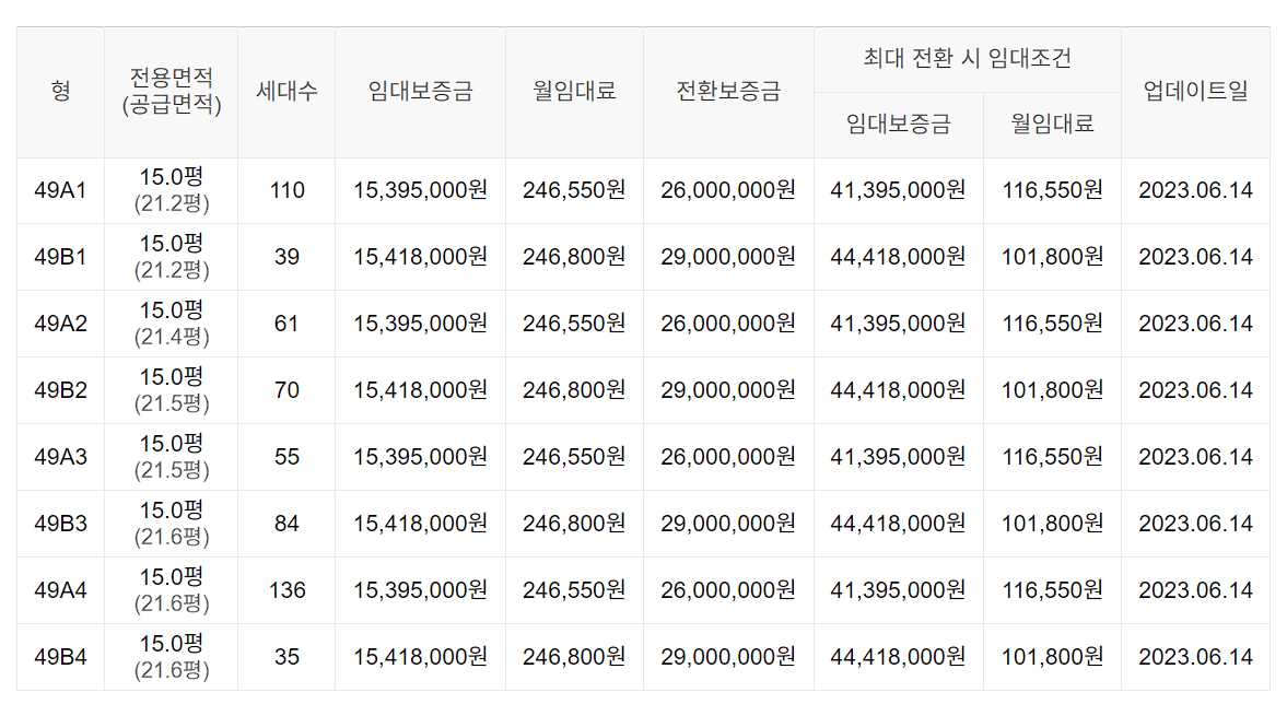 임대보증금 및 월 임대료는 입주자 모집공고일 기준이며, 보증금 최대 전환 시 변동될 수 있습니다.