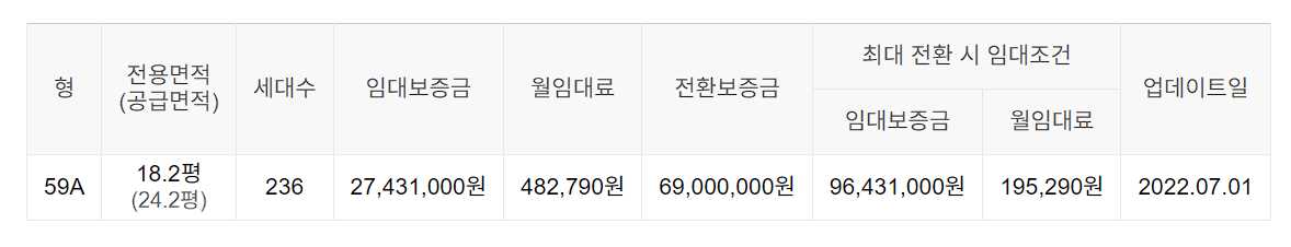 임대보증금 및 월 임대료는 입주자 모집공고일 기준이며, 보증금 최대 전환 시 변동될 수 있습니다.