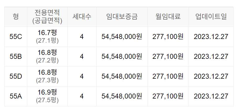 임대보증금 및 월 임대료는 입주자 모집공고일 기준이며, 보증금 최대 전환 시 변동될 수 있습니다.
