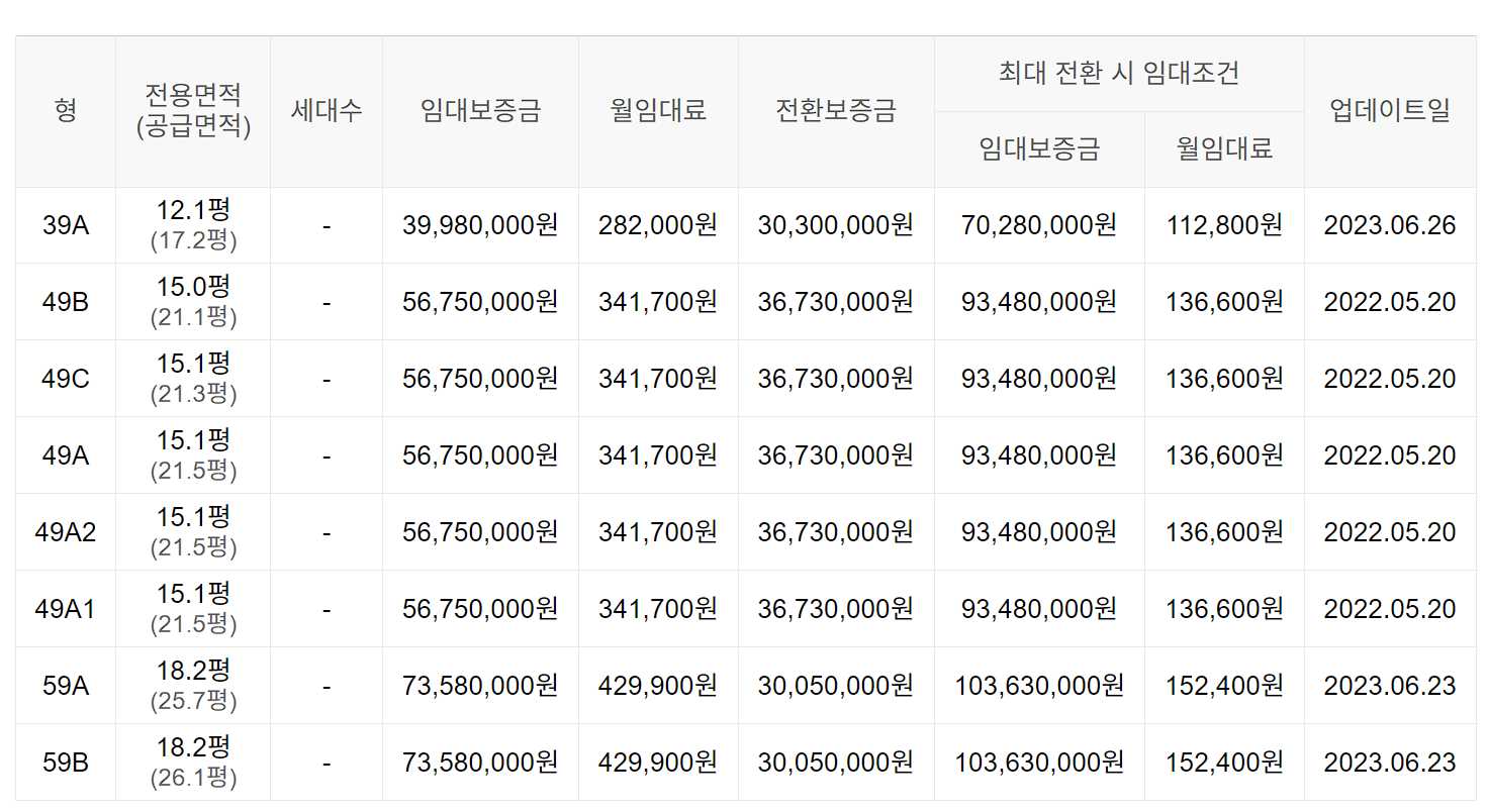 임대보증금 및 월 임대료는 입주자 모집공고일 기준이며, 보증금 최대 전환 시 변동될 수 있습니다.