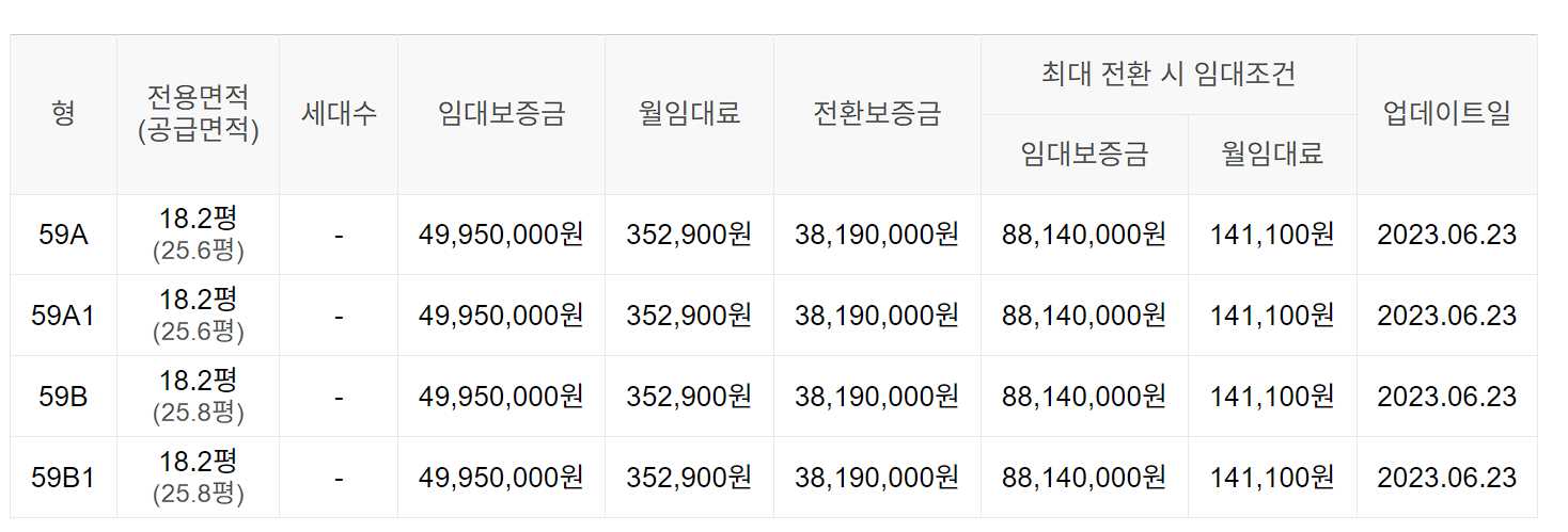 임대보증금 및 월 임대료는 입주자 모집공고일 기준이며, 보증금 최대 전환 시 변동될 수 있습니다.