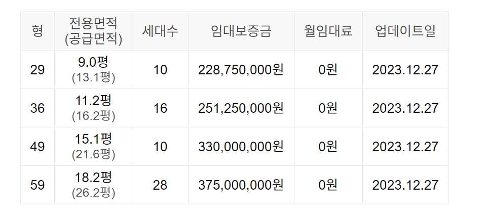 임대보증금 및 월 임대료는 입주자 모집공고일 기준이며, 보증금 최대 전환 시 변동될 수 있습니다.