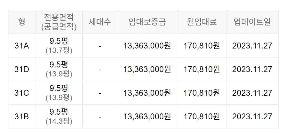 임대보증금 및 월 임대료는 입주자 모집공고일 기준이며, 보증금 최대 전환 시 변동될 수 있습니다.