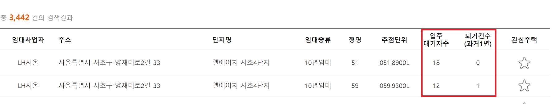예비입주자 대기현황(마이홈)에서 해당 단지를 검색하면, 입주 대기자수를 확인이 가능합니다.