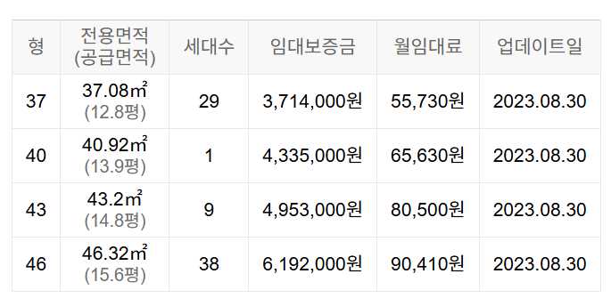 임대보증금 및 월 임대료는 입주자 모집공고일 기준이며, 보증금 최대 전환 시 변동될 수 있습니다.