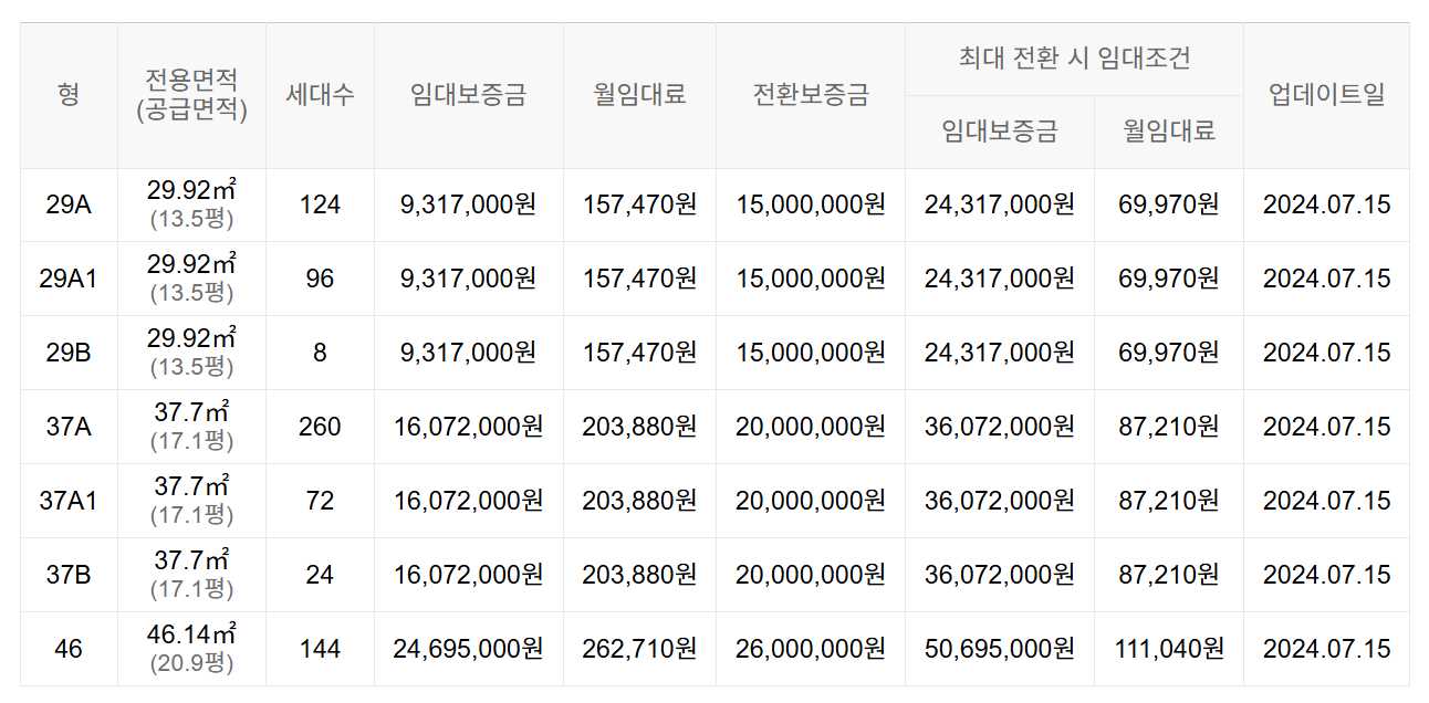 임대보증금 및 월 임대료는 입주자 모집공고일 기준이며, 보증금 최대 전환 시 변동될 수 있습니다.