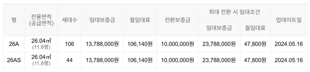 임대보증금 및 월 임대료는 입주자 모집공고일 기준이며, 보증금 최대 전환 시 변동될 수 있습니다.