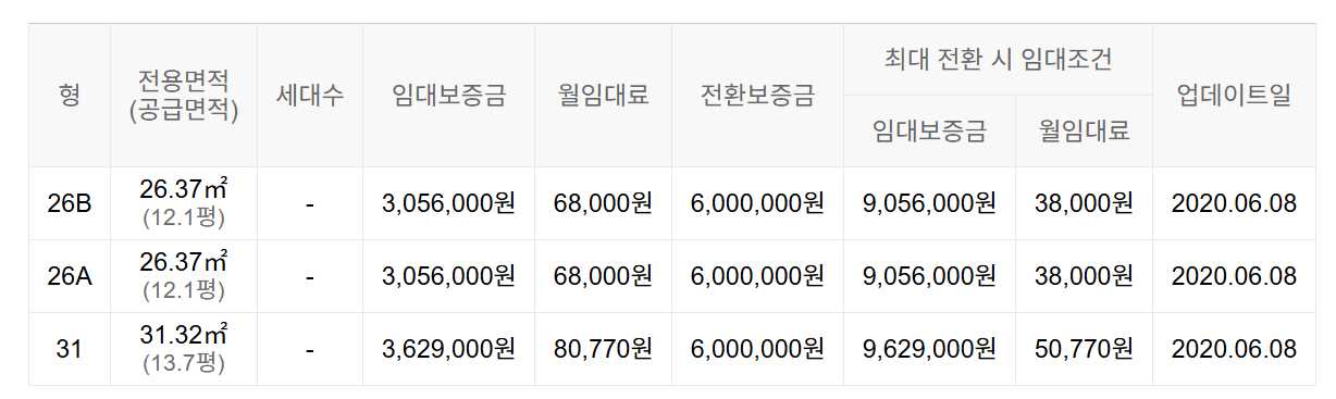 임대보증금 및 월 임대료는 입주자 모집공고일 기준이며, 보증금 최대 전환 시 변동될 수 있습니다.