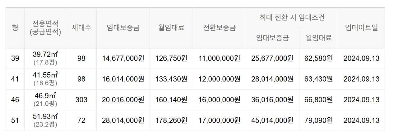 임대보증금 및 월 임대료는 입주자 모집공고일 기준이며, 보증금 최대 전환 시 변동될 수 있습니다.