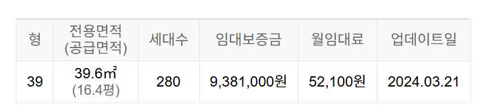 임대보증금 및 월 임대료는 입주자 모집공고일 기준이며, 보증금 최대 전환 시 변동될 수 있습니다.