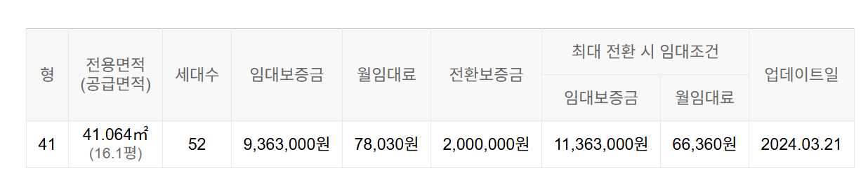 임대보증금 및 월 임대료는 입주자 모집공고일 기준이며, 보증금 최대 전환 시 변동될 수 있습니다.