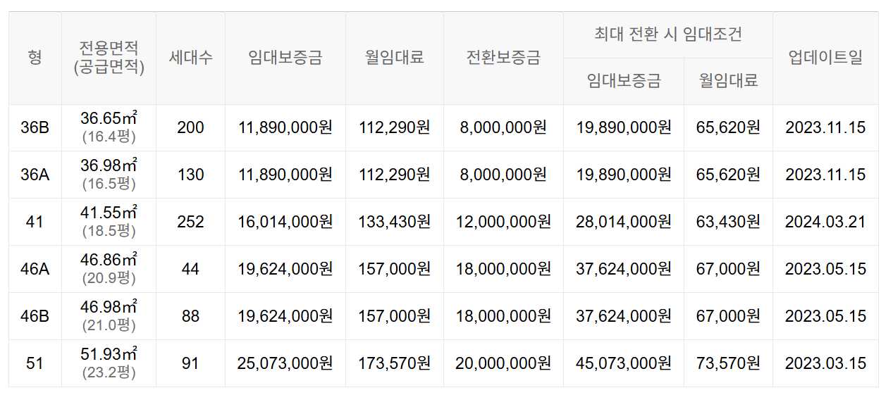 임대보증금 및 월 임대료는 입주자 모집공고일 기준이며, 보증금 최대 전환 시 변동될 수 있습니다.