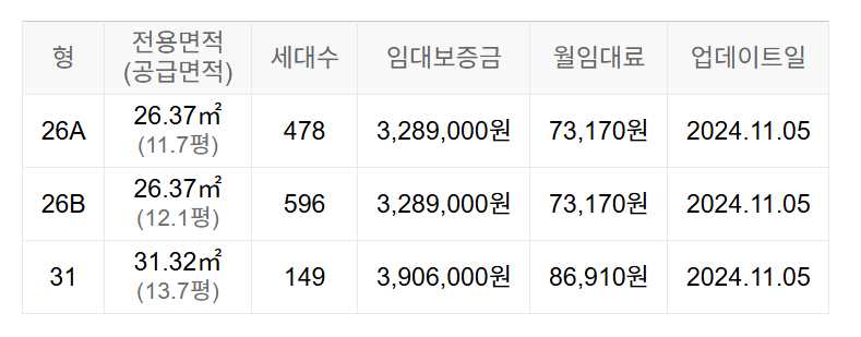 임대보증금 및 월 임대료는 입주자 모집공고일 기준이며, 보증금 최대 전환 시 변동될 수 있습니다.