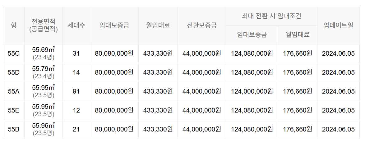 임대보증금 및 월 임대료는 입주자 모집공고일 기준이며, 보증금 최대 전환 시 변동될 수 있습니다.