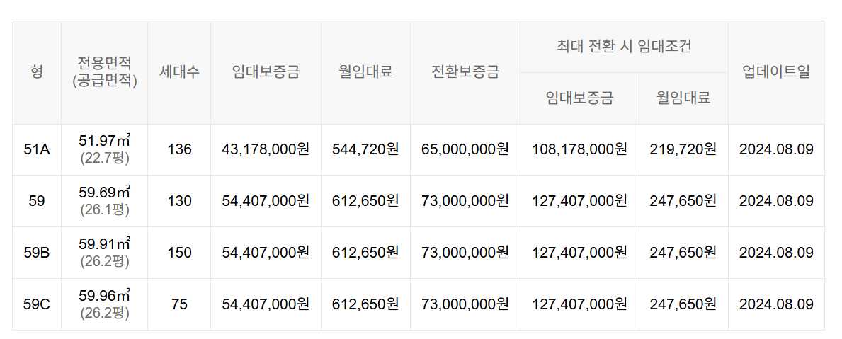 임대보증금 및 월 임대료는 입주자 모집공고일 기준이며, 보증금 최대 전환 시 변동될 수 있습니다.
