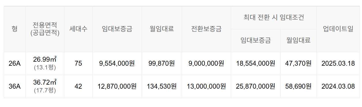 임대보증금 및 월 임대료는 입주자 모집공고일 기준이며, 보증금 최대 전환 시 변동될 수 있습니다.