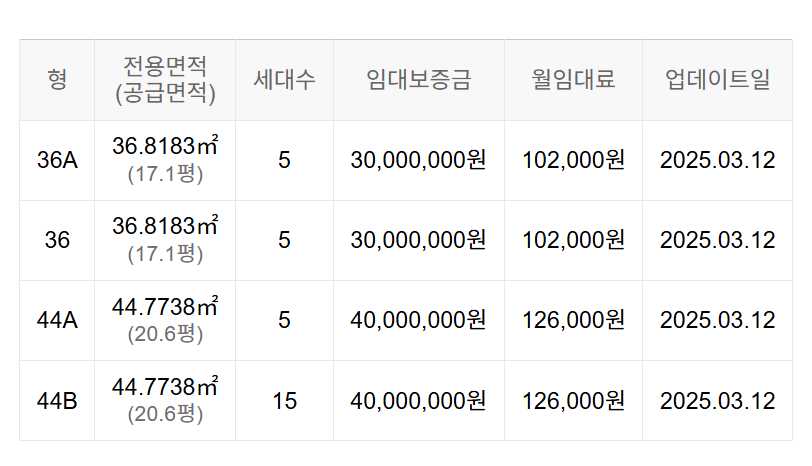 임대보증금 및 월 임대료는 입주자 모집공고일 기준이며, 보증금 최대 전환 시 변동될 수 있습니다.