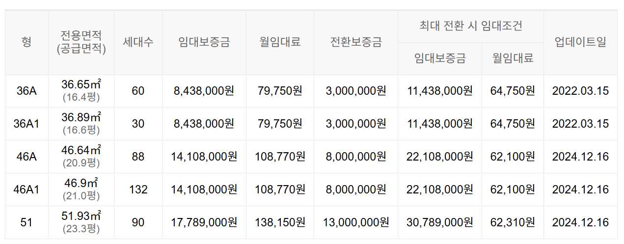 임대보증금 및 월 임대료는 입주자 모집공고일 기준이며, 보증금 최대 전환 시 변동될 수 있습니다.