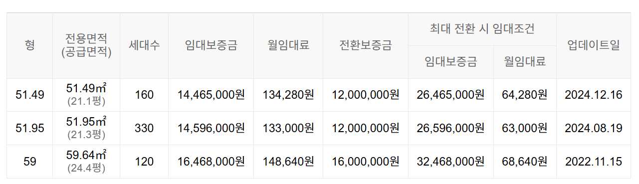 임대보증금 및 월 임대료는 입주자 모집공고일 기준이며, 보증금 최대 전환 시 변동될 수 있습니다.