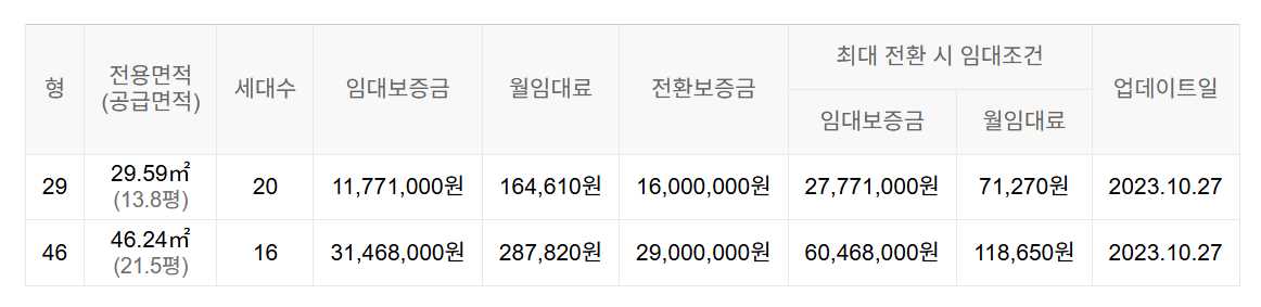 임대보증금 및 월 임대료는 입주자 모집공고일 기준이며, 보증금 최대 전환 시 변동될 수 있습니다.