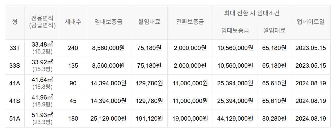 임대보증금 및 월 임대료는 입주자 모집공고일 기준이며, 보증금 최대 전환 시 변동될 수 있습니다.