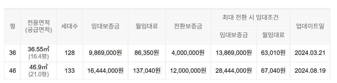 임대보증금 및 월 임대료는 입주자 모집공고일 기준이며, 보증금 최대 전환 시 변동될 수 있습니다.