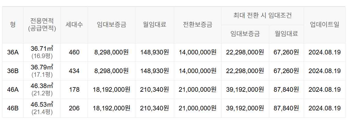 임대보증금 및 월 임대료는 입주자 모집공고일 기준이며, 보증금 최대 전환 시 변동될 수 있습니다.