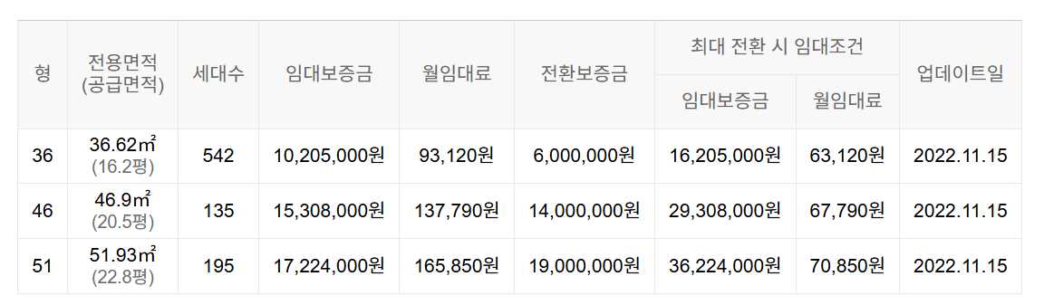 임대보증금 및 월 임대료는 입주자 모집공고일 기준이며, 보증금 최대 전환 시 변동될 수 있습니다.