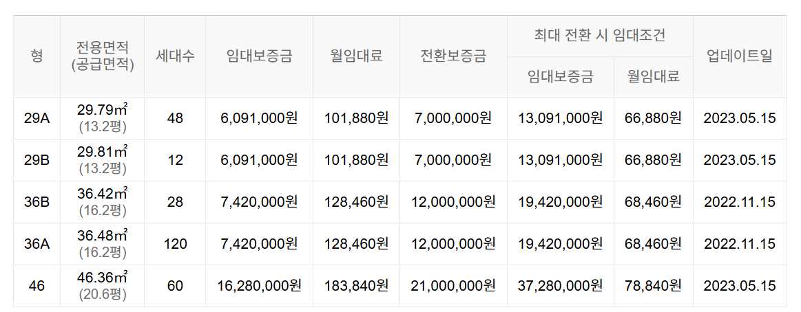 임대보증금 및 월 임대료는 입주자 모집공고일 기준이며, 보증금 최대 전환 시 변동될 수 있습니다.