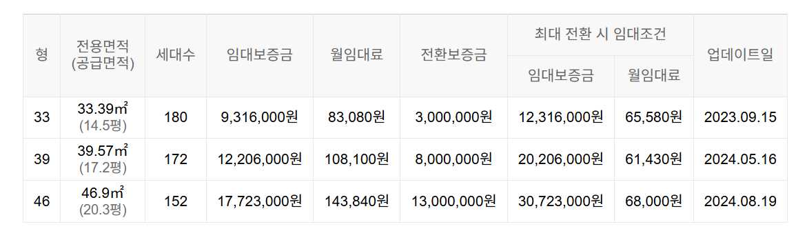 임대보증금 및 월 임대료는 입주자 모집공고일 기준이며, 보증금 최대 전환 시 변동될 수 있습니다.