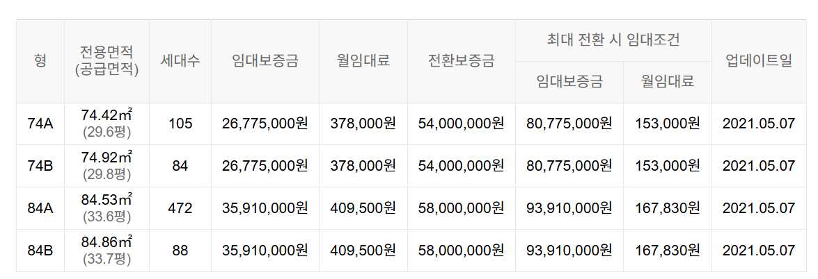 임대보증금 및 월 임대료는 입주자 모집공고일 기준이며, 보증금 최대 전환 시 변동될 수 있습니다.