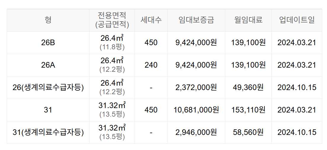 임대보증금 및 월 임대료는 입주자 모집공고일 기준이며, 보증금 최대 전환 시 변동될 수 있습니다.