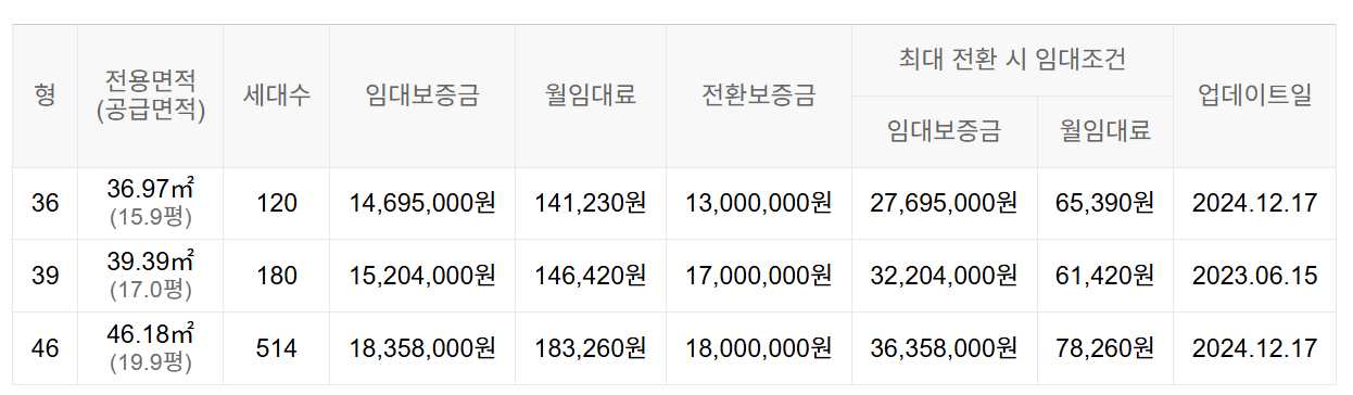 임대보증금 및 월 임대료는 입주자 모집공고일 기준이며, 보증금 최대 전환 시 변동될 수 있습니다.