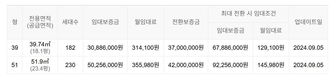 임대보증금 및 월 임대료는 입주자 모집공고일 기준이며, 보증금 최대 전환 시 변동될 수 있습니다.