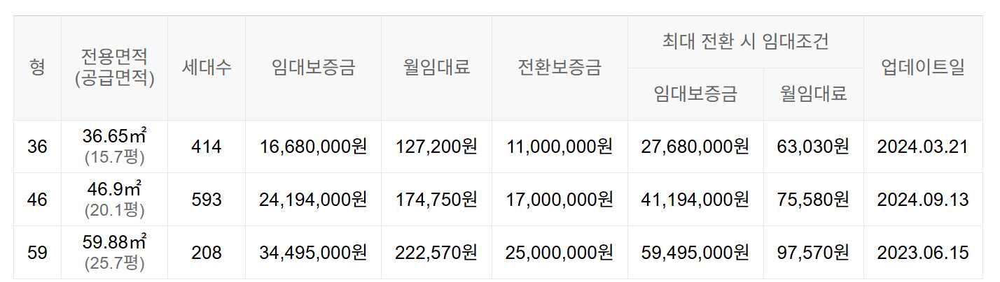 임대보증금 및 월 임대료는 입주자 모집공고일 기준이며, 보증금 최대 전환 시 변동될 수 있습니다.